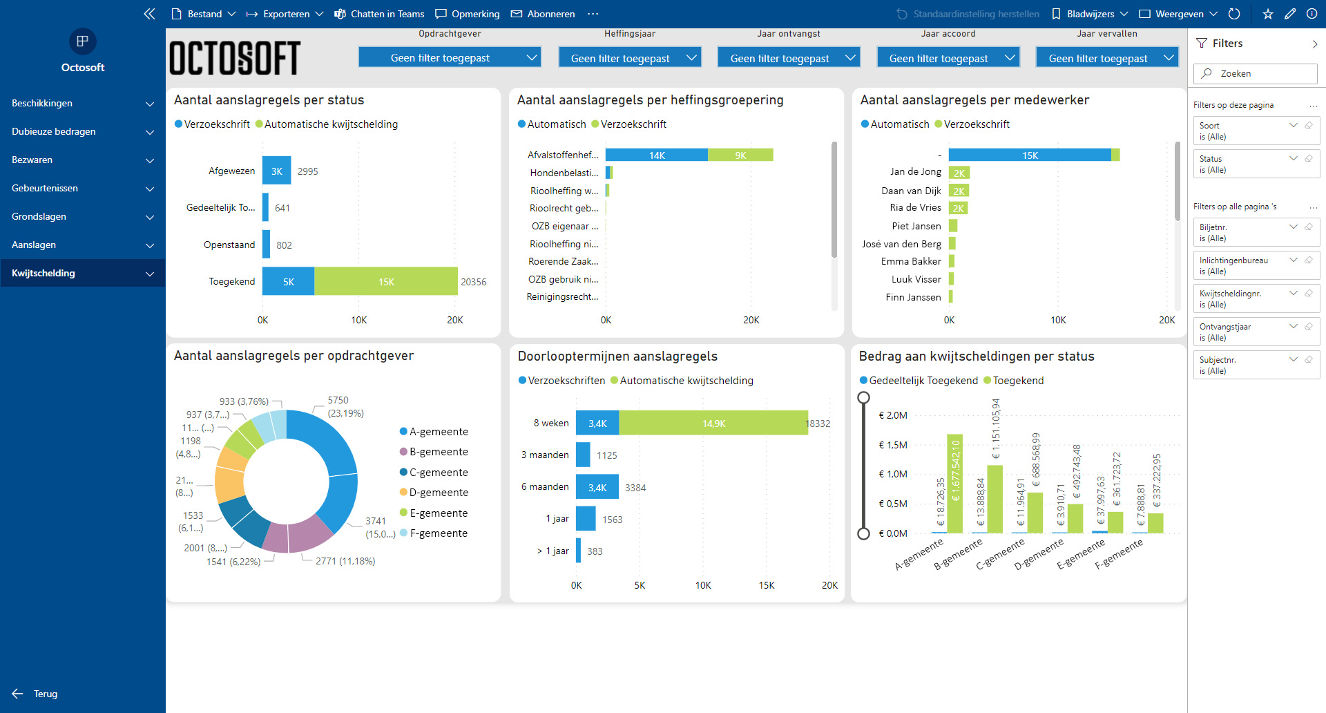 Belangrijke inzichten die nu nog onder water liggen, brengt OCTOSOFT naar boven. Ze verzamelt en combineert data uit alle belastingsystemen met basisregistraties zoals BRK, BAG, BRP, NHR en WOZ.